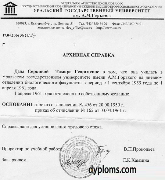 Справка об обучении